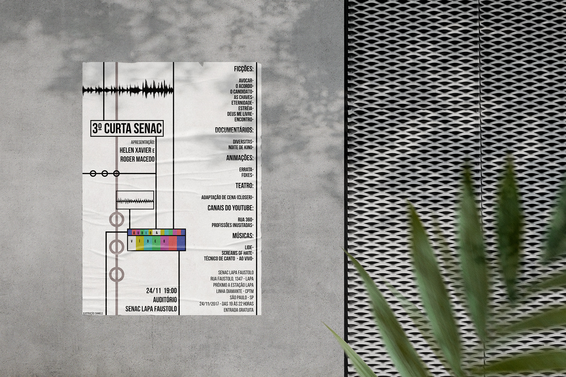Cartaz elaborado para a unidade do Senac Lapa Scipião e Senac Lapa Faustolo para o 3º Curta Senac que envolveu uma parceria dos times de audiovisual e moda das duas unidades.